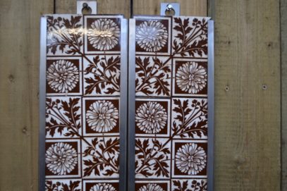 Stylised sunflower and foliage spears alternate this cream & brown quarter tile design.
