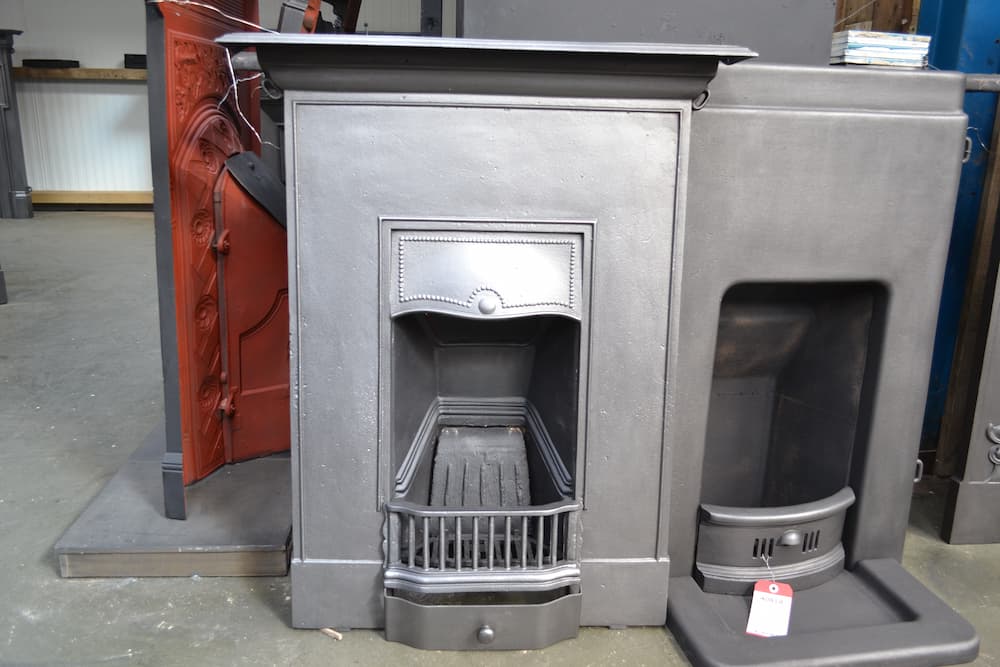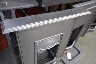 Reclaimed Edwardian bedroom fireplace trimmed with berry beading to the hood.