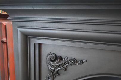 Late Victorian cast iron fireplace surround with bolection moulding around the opening.