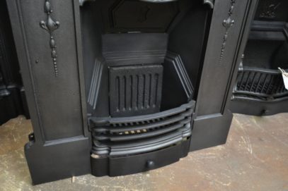 Edwardian cast iron fireplace decorated with swags of bluebells suspended by ribbons. In excellent condition. From a house in Morecambe, Lancashire. Circa 1910.