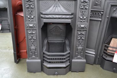 Ornate Victorian bedroom fireplace with birds feeding from horns of plenty, a central shell and an abundance of flowers and foliage. In excellent condition. From a house in Southport. Circa 1892