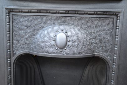 A unique late Victorian arts & crafts fireplace with a distinct William Morris influence in the chrysanthemum detail.