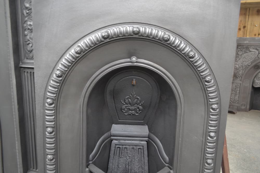 Victorian bedroom cast iron arched insert with stylised floral bosses around the arch.