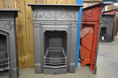 Victorian cast iron bedroom fireplace decorated with flowers and foliage. Manufactured by Coalbrookdale.