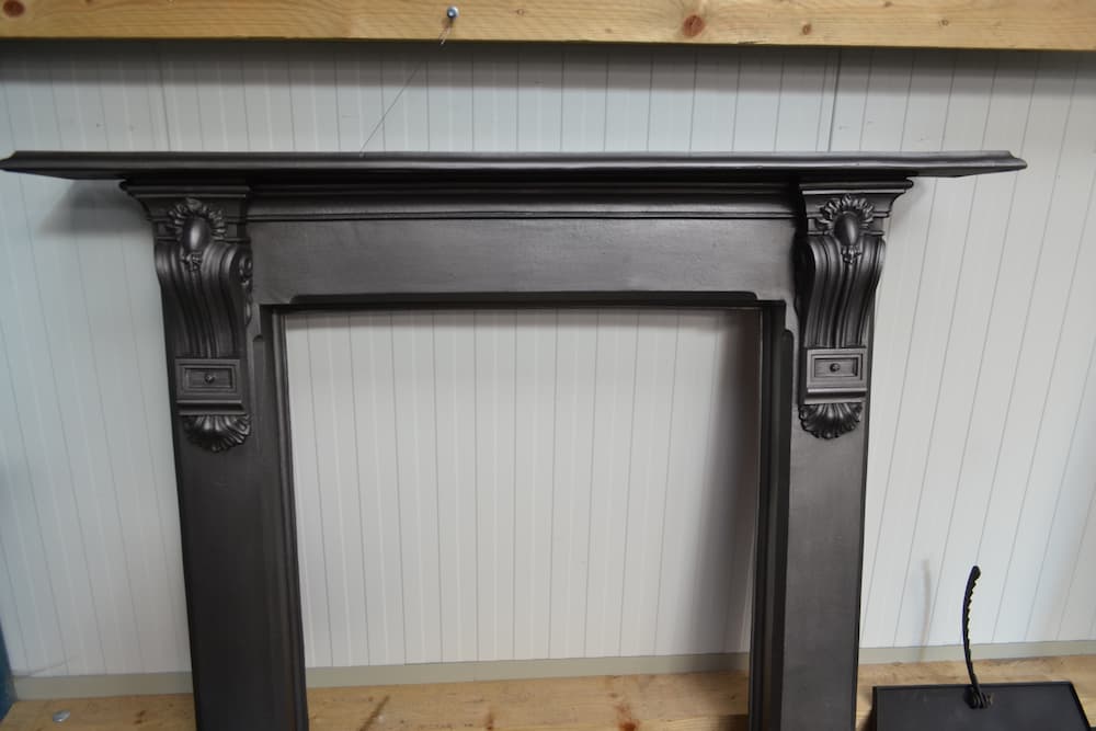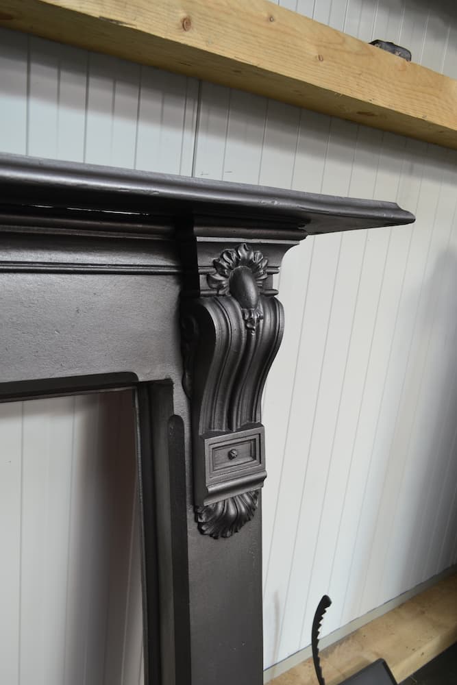 Original Victorian cast iron fire surround, with eye-catching corbels incorporating leaf detail.