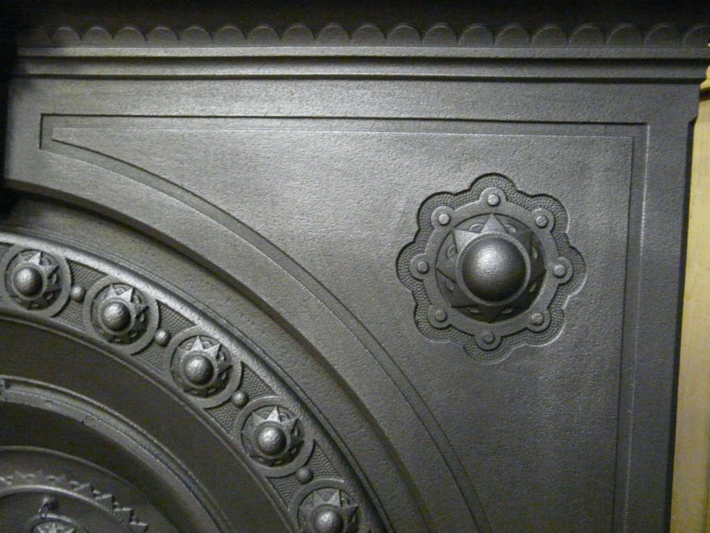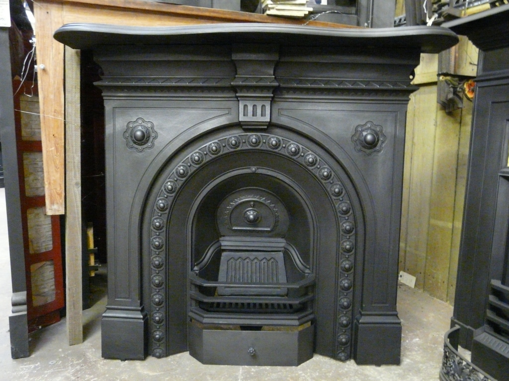 Victorian fireplace with star-shaped bosses. In good condition, complete with new back and grate. From a house in Didsbury, Manchester. Circa 1878.