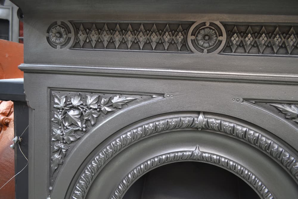 Attractive Victorian fireplace with crisp ivy and berry detailed spandrils. In excellent condition. From a house in Stockport. Circa 1871.