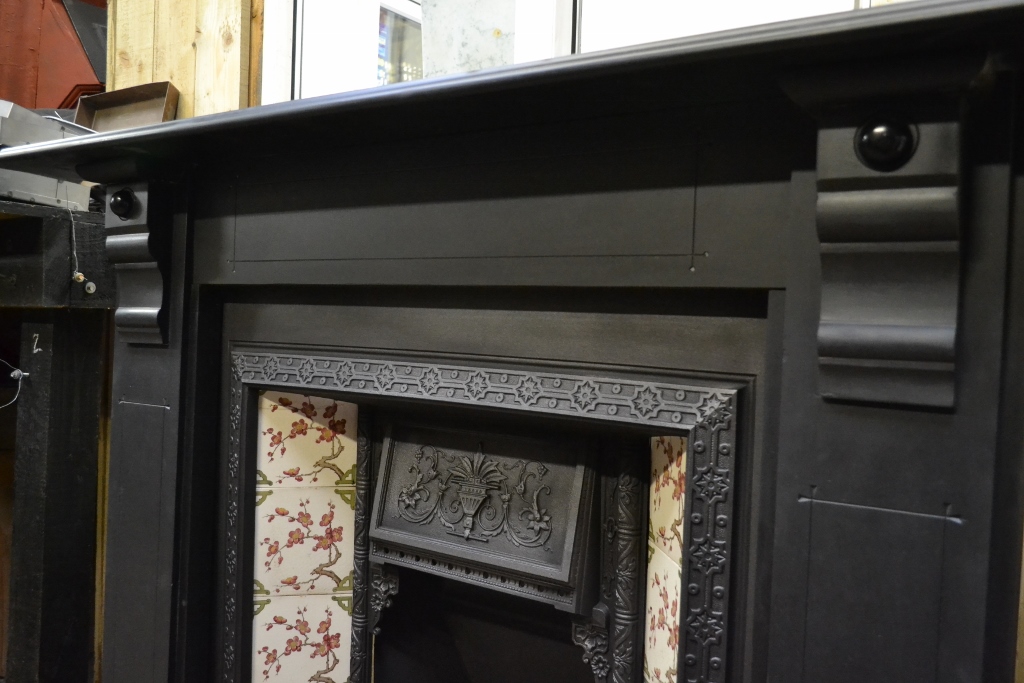Victorian slate fireplace surround with simple etched panel detail. In good condition, from a house in Nottingham. Circa 1890.