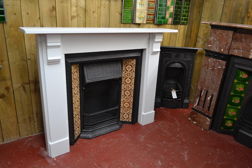 Victorian slate fireplace surround, finished is satin white. In good condition. From a house in Cardiff, South Wales.